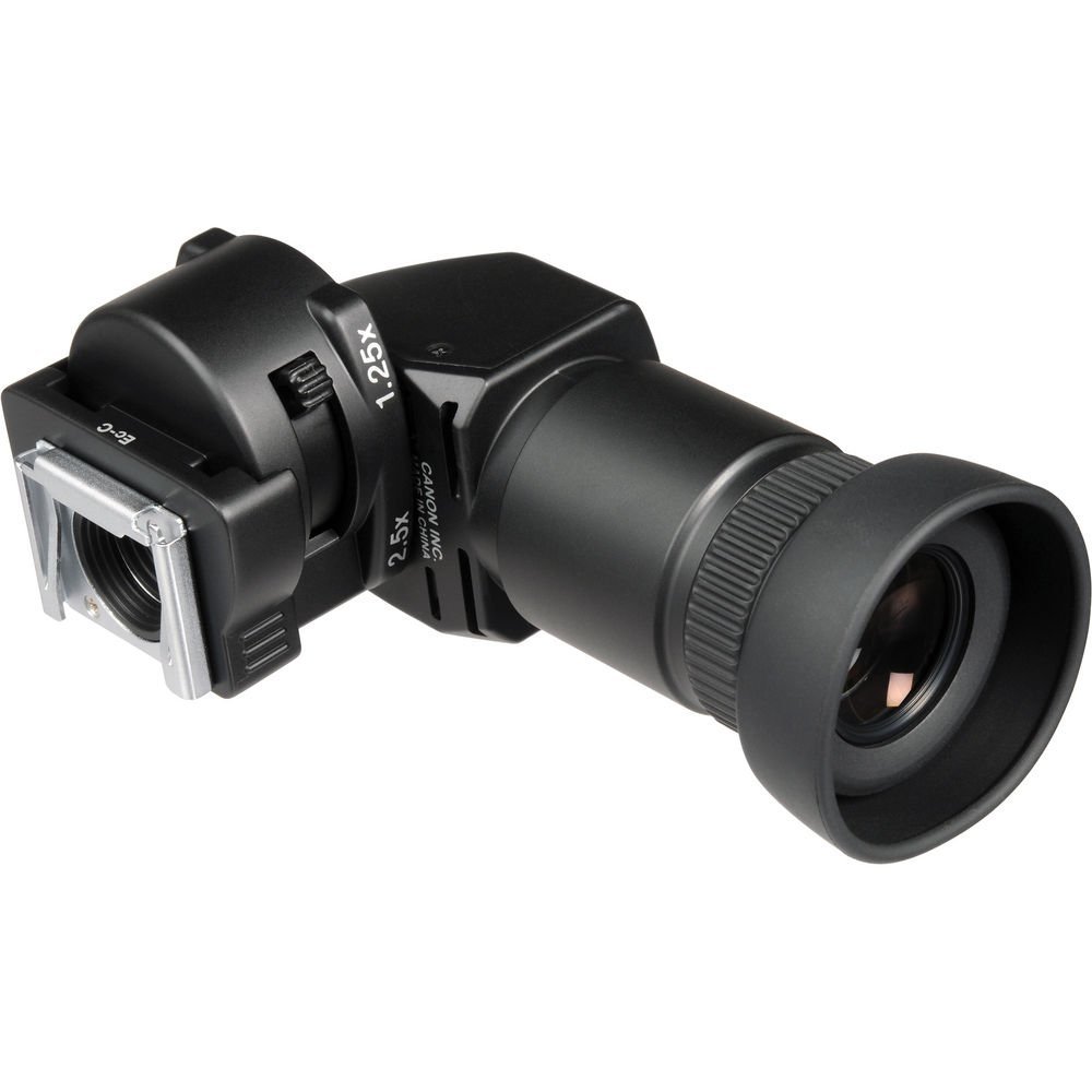 The Canon Angle Finder C lets you adjust the viewing angle while also providing a 1.25x to 2.5x switchable magnification. Provided with built-in variable diopter correction, supplied with Finder Adapters Ec-C, Ed-C to fit any EOS camera.