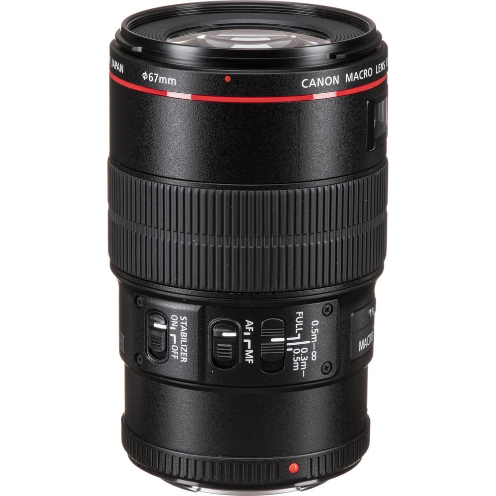 Primarily designed for close-up shooting, the Canon EF 100mm f/2.8L Macro IS USM Lens is a versatile L-series short telephoto prime that is also well-suited for portraiture and other mid-range subjects. As a macro lens, however, this 100mm offers a life-size, 1:1 maximum magnification and an 11.8″ minimum focusing distance. Complementing close-up shooting, an Image Stabilizer is featured that minimizes camera shake by two stops at full 1:1 magnification, or up to four stops at lower magnifications for sharper handheld shooting. Also contributing to smooth and intuitive handling, a ring-type USM and internal focusing design offers quick, quiet, and accurate autofocus performance along with full-time manual focus override. In regard to its optical assets, one ultra-low dispersion element is featured, to control color fringing and chromatic aberrations, and a Super Spectra coating has been applied to suppress flare and ghosting for improved contrast and color fidelity. Additionally, as an L-series lens, this 100mm f/2.8 is weather-sealed for working in inclement conditions.
