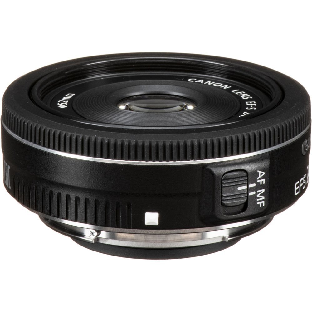 Recognizable by its truly thin profile, along with an advanced autofocus motor, the EF-S 24mm f/2.8 STM from Canon is a 38.4mm-equivalent prime designed for APS-C-format DSLRs. Its optical design features one aspherical element, which helps to reduce distortion and spherical aberrations for high sharpness and clarity. A Super Spectra coating has also been applied, which helps to minimize lens flare and ghosting for improved contrast and color fidelity in bright lighting conditions. Additionally, benefitting both photo and video applications, an STM stepping AF motor is used to realize quick, accurate, and near-silent autofocus performance.