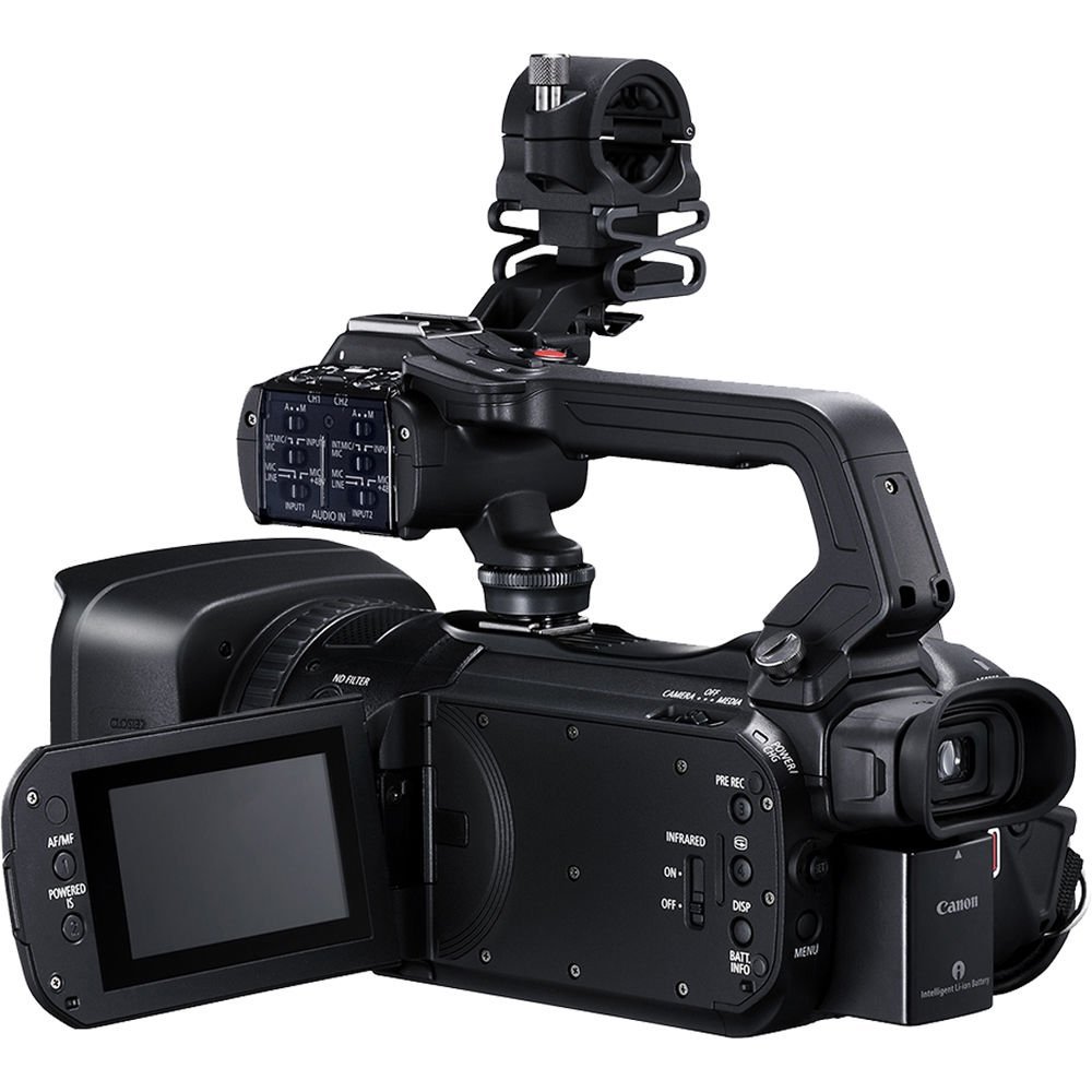 The XA50’s optics include an integrated 15x HD optical zoom and a nine-bladed circular iris for more natural highlights, and wide DR gamma support for low-light recording. The camera’s pro-style features include Dual Pixel and Contrast autofocus, fast- and slow-motion recording, full manual control, optical and electronic image stabilization, a 3″ touchscreen LCD, user-assignable buttons, infrared mode, and a DIG!C DV 6 image processor with high sensitivity and low noise. The XA50 also has display monitoring features such as zebra, color bars, and test tone and a built-in neutral density filter mechanism offering ND4, ND16, and ND64 options.